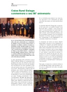 18tendenciasCaixa Rural Galegaconmemora o seu 50o aniversarioA poucos días de nalizar 2016, Caixa Rural Galega ce- lebrou unha gala conmemorativa polo cincuentenario da entidade no Círculo das Artes de Lugo. Asistiron os empregados da entidade e xubilados da empresa, re- presentantes do grupo Caja Rural, membros do Consello Galego de Cooperativas e representantes políticos como como a alcaldesa de Lugo, Lara Méndez; o subdelegado do Goberno en Lugo, Ramón Carballo; o conselleiro de Economía, Emprego e Industria, Francisco Conde López; a conselleira de Medio Rural, Ángeles Vázquez, e o pre- sidente da Xunta de Galicia, Alberto Núñez Feijóo, entre outras destacadas personalidades.A gala, presentada polo xornalista lucense Marcos Méndez Moreira, foi inaugurada pola alcaldesa de Lugo, que destacou que Caixa Rural Galega “axudou ao sector máis vertebra- dor da provincia, ao sector gandeiro e agrí- cola, ao que ten que ser o noso presente e o noso futuro”. Trala benvida, o director xeral da entidade, Jesús Antonio Méndez Álvarez- Cedrón, sinalou “a proximidade, a vincula- ción co territorio e o continuo reinvestimen-to de bene cios como sinais de identidade da caixa”. Finalizou presentando o libro conmemorativo “50 anos cos pés na te- rra xunto á súa autora, a xornalista Marta Veiga, quen salientou a idea principal da obra: “Facer unha homenaxe ás persoas, empregados, clientes e socios que xeron posibles estes 50 anos deixando atrás da-tos e cronoloxías para deternos nas vivencias, nas sensacións e nos sentimentos da xente que estivo de acordo con outro xeito de facer banca”.O xornalista Fernando Ónega xo un percorri- do por estes anos cun relatorio titulado “Crise nanceira: feitos e feridas”. Cara ao nal da gala, o actual presidente da Caixa Rural Ga- lega, Manuel Varela López, agradeceu o seu labor a todos cantos formaron e forman par- te da entidade e lembrou que “Esta entidade afrontará o seu futuro sempre con prudencia, sen comprometer a súa estabilidade e cun constante compromiso con Galicia”.O presidente da Xunta de Galicia, Alberto Núñez Feijóo, clausurou o acto aseverando: “A con anza é o segredo que permite entender estes 50 anos de Caixa Rural Galega. É admi- rable a obra cooperativa que viviu no seu tem- po e para o seu tempo, que se soubo adaptar aos cambios sociais e económicos sen mudar os seus valores e que prima ás persoas, os proxectos dos clientes, por riba das súas cifras. Levaron as cousas con sentidiño respectando dende os inicios os seus sinais de identidade: estabilidade, prudencia e galeguidade. Son, por todo isto, un exemplo para o sistema ban- cario español”.Trala gala, a maioría dos asistentes dirixíronse ao Hotel Méndez Núñez, onde remataron cun- ha cea as celebracións por estes cincuenta anos de historia.