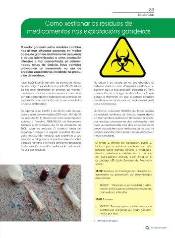 En España, a Lei 22/2011, de 28 de xullo, de resi- En Galicia, o Decreto 38/2015, de 26 de febreiro,
