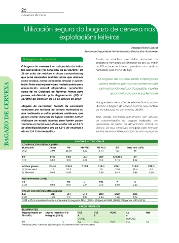 O bagazo de cervexa é un subproduto da indus- do 88%, e debe declararse a proteína bruta cando a