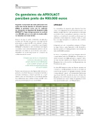 Despois de que no verán, o Ministerio de Agricultu- ra dese por iniciado un proceso de negociación para revisar o papel das OP e dos primeiro compra- dores, AGACA anima ás cooperativas que integran APROLACT a traballar no xeito de relanzar esta gura concibida como unha ferramenta práctica de ar- tellamento da oferta do sector lácteo e procurar o reequilibrio do poder negociador no conxunto da cadea de valor do sector.