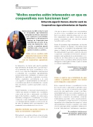 Estou convencido de que o cooperativismo é a me- llor solución para os agricultores e gandeiros espa- ñois para o seu acceso ao mercado, para a pervi- vencia das súas explotacións e para o seu futuro. Lamentablemente na nosa sociedade primouse o in- dividualismo e o modelo económico capitalista, que favoreceron a aparición de estruturas comerciais intermediarias, que loitan contra o desenvolvemento do cooperativismo, porque lle vai niso a súa propia supervivencia. As administracións tampouco creron su cientemente no modelo cooperativo como mellor solución para agricultores e gandeiros e xeron polí- ticas de “café para todos” que tampouco axudaron.