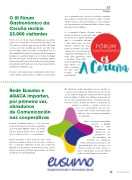 O III Fórum Gastronómico da Coruña recibiu 23.000 visitantesEntre o 12 e o 14 de marzo 23.000 persoas partici- paron nas actividades do Fórum Gastronómico de A Coruña, un evento que naceu en 2015. O Fórum contou con máis de 200 expositores (un 30% máis que en 2016), entre eles varais cooperativas asocia- das a AGACA: Bodega Cooperativa Jesús Nazareno, Bodega Cooperativa Virgen de las Viñas, Bodegas Eidosela, Condado Paradanta, Cooperativa Agraria Provincial de A Coruña, Cooperativas Lácteas Unidas, Cooperativa de Produtores do Campo Capela,Terras da Mariña e Verín-Biocoop.Durante os tres días, houbo actividades de todo tipo: catas, talleres gastronómicos, relatorios especializa-47brevesdos e presentacións de novos produtos, ademais dun espazo acondicionado para o público infantil. Tamén se deu ocasion de reunirse con doce empre- sas importadoras de Holanda, Bélxica, Reino Unido, Irlanda, Polonia e México.A cooperativa Campo Capela recibiu o premio InnoFórum ao produto máisinnovador polo queixo O Mouro,que a cooperativa describe“como unha torta, con ma- duración mínima de dous meses e un baño de café e canela; sen conservantes nin engadidos” Entregáronse ta- mén outros galardóns coma o Cociñeiro Novo 2017 (para Jorge Gago)que valora coci- ñeiros emerxen- tes que usan produto de proximidade.Rede Eusumo e AGACA imparten, por primeira vez, obradoirosde Comunicaciónnas cooperativasCondes de Albarei estreou o ciclo de obra- doiros de Comunicación en Cooperativas que impartirá AGACA dentro da Rede Eusumo para a promoción e o fomentoda economía social e o cooperativismo.Cada obradoiro, cunha duración de 5 horas, afonda en diversos aspectos do proceso comunica- tivo, co obxectivo melloralos e que, así, as relacións laboráis e a transimisión de información nas coope- rativas sexan máis efectivas, repercutindo na mellora da e ciencia e produtividade.Os obradoiros están impartidos por un experto en comunicación e abarcan dende modos de comuni- cación verbal e linguaxe corporal ata técnicas para falar en público.Tamén pon énfase na importancia de escoitar activamente, sendo conscientes de que factores coma o estado de ánimo, as experienciasprevias ou mesmo o estrato socioeconó- mico dos participantes nun proceso comunicativo dunha mensaxe poden in uír en cómo se emiten e entendenas mensaxes.Xunto con esta iniciativa, Rede Eusumo e AGACA levan a cabo actividades de difusión do coo- perativismo en- tre estudantes, de fomento do emprende- mento entre persoas mozas ou de aproveitamento dos recursos dos montes veciñais en man común, co apoio impulsadas pola Conselleríade Economía, Emprego e Industria.No132 - Marzo 2017